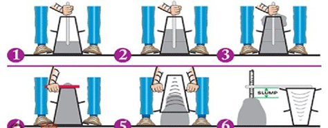 روش اندازهگیری: اسلامپ با وارونه کردن مخروط اسلامپ و استفاده از میله تراکم به عنوان مرجع اندازهگیری میشود.